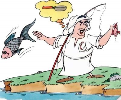 يروى أن صياداً كان السمك يعلق بصنارته بكثرة.